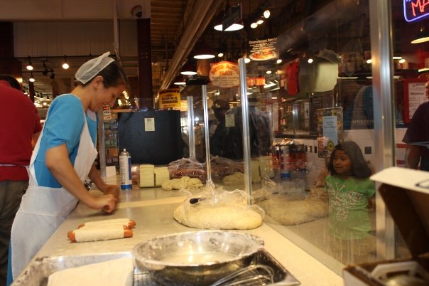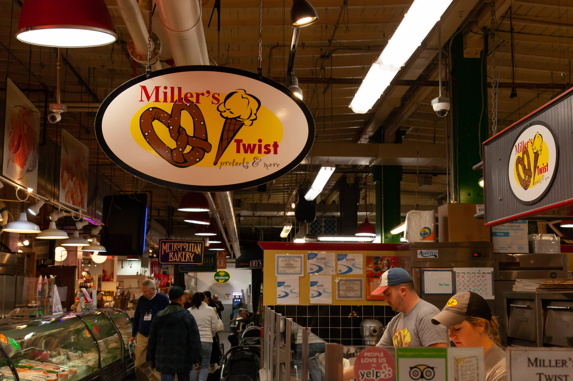 It’s a tough choice between the sweet and the savory at Miller’s Twist, Roger Miller’s shop that sells soft, butter-dipped Amish-style pretzels. These pretzels, a Reading Terminal favorite, aren’t the chewy pretzels that Philadelphia is known for, but plenty of people prefer them. These are made from fresh dough throughout the day, rolled and twisted by hand, and tender. The faint tang from baking soda and the rich butter gives them their distinctive flavor. Since their pretzels are so good you might want to eat them three times a day, Miller’s Twist has figured out how. There are many breakfast options: bacon, egg, and cheese, all wrapped in pretzel dough. Lunch choices include pretzel-wrapped hot dogs or turkey sausage flavored with broccoli and cheddar.