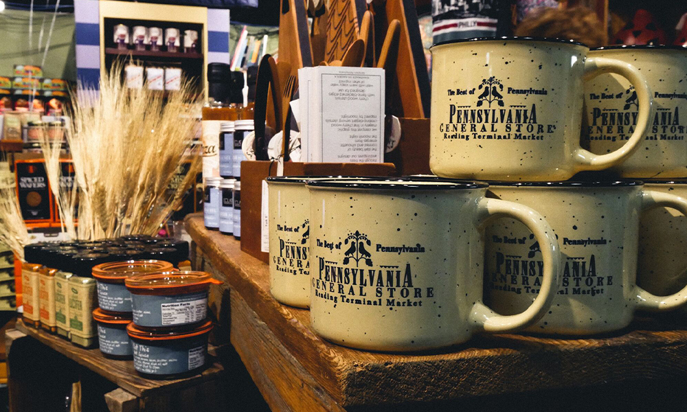 Whether you’re a tourist looking for the perfect souvenir or a local in search of a sweet treat, the Pennsylvania General Store is the place to be. Michael and Julie Holahan opened it in 1987 as a lunch box catering business using the foods of Reading Terminal Market, but when someone asked them if they shipped Tastycakes they shifted their focus to building a collection of the best Pennsylvania-made products. These they assemble into gift baskets and goody trays to ship near and far. You’ll know you’ve spotted their shop when you see the handsome display of Hope’s Cookies, hand-dipped chocolate-covered pretzels, and tray after tray of chocolates, truffles, and caramels made by Pennsylvania’s premier chocolatiers. They also carry locally roasted coffee, Pennsylvania Dutch preserves and honey, handicrafts like ceramics and quilts, and handmade goods from young Philly artisans like Girls Can Tell, Wild Heart Paper and Tin Goat Soaps
