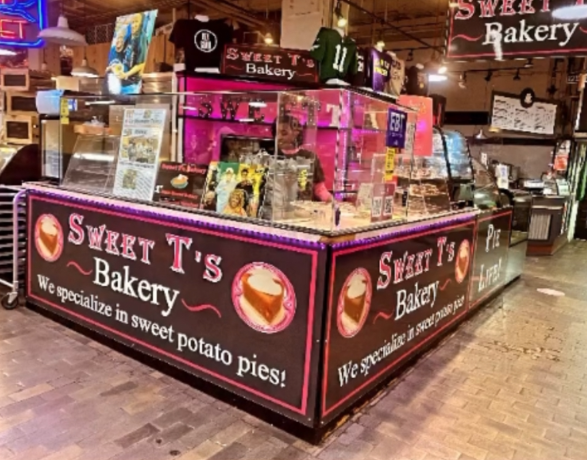 Sweet T’s Bakery is believed to be the first Black-owned bakery in Market history. They offer a line of sweet-potato-based sweets and baked goods like sweet potato pie, sweet potato pound cake, and sweet potato cheesecake along with four signature drinks.